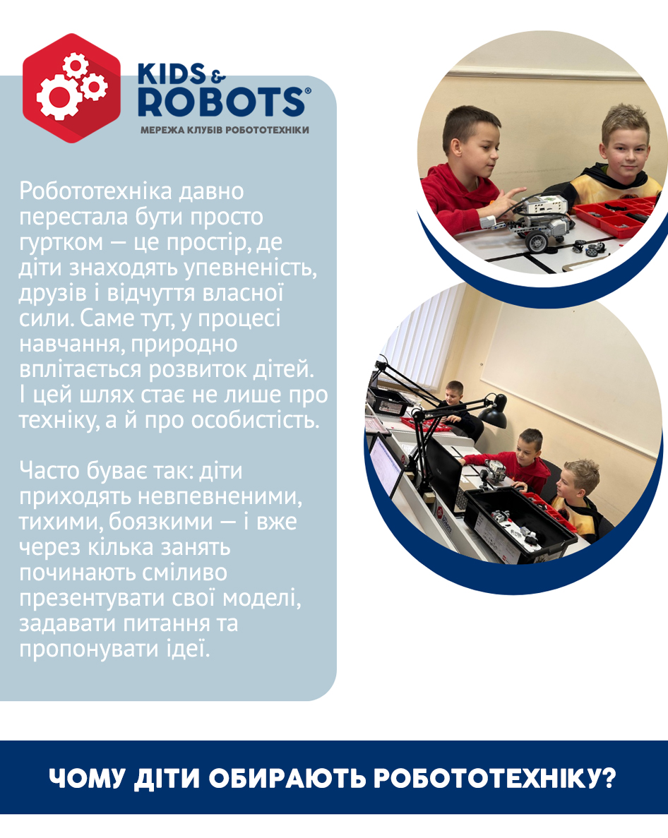 Коли ми чуємо слова Робототехніка чи роботи, на думку відразу спадають ті неймовірні механізми, які так часто можна побачити у фільмах, новинах чи відео, знятих на наукових виставках. Однак багато хто навіть не здогадується, що роботи - це не тільки машини, що допомагають нам на виробництвах, це також цікавий, практичний спосіб навчання дітей таким наукам, як математика, програмування, фізика, механіка та інженерія.