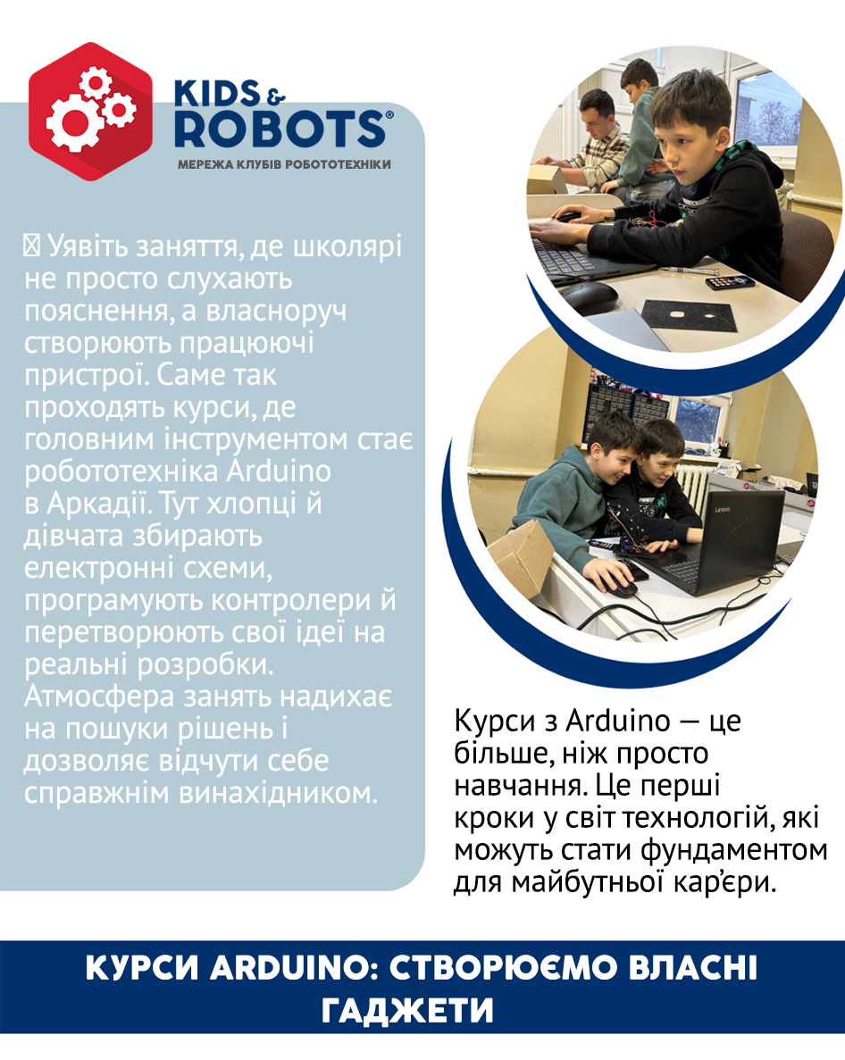 🤖 Уявіть заняття, де школярі не просто слухають пояснення, а власноруч створюють працюючі пристрої. Саме так проходять курси, де головним інструментом стає робототехніка Arduino в Аркадії. Тут хлопці й дівчата збирають електронні схеми, програмують контролери й перетворюють свої ідеї на реальні розробки. Атмосфера занять надихає на пошуки рішень і дозволяє відчути себе справжнім винахідником.