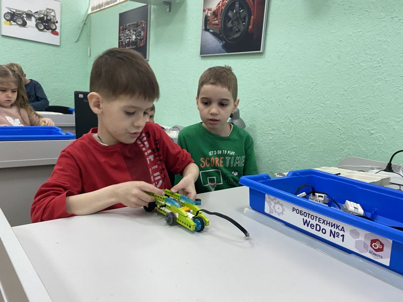 The WEDO Robotics course is an activity for children who have never encountered with the robotics before. The initial WEDO robotics at the Primorskii district helps young children to learn the basics of mechanics, the principles of operation of mechanisms, detectors, introduces the basics of algorithms and various laws of physics. At the lessons, the children build their first robots using educational set, motion sensors, tilt sensors, different motors, microcomtroller.