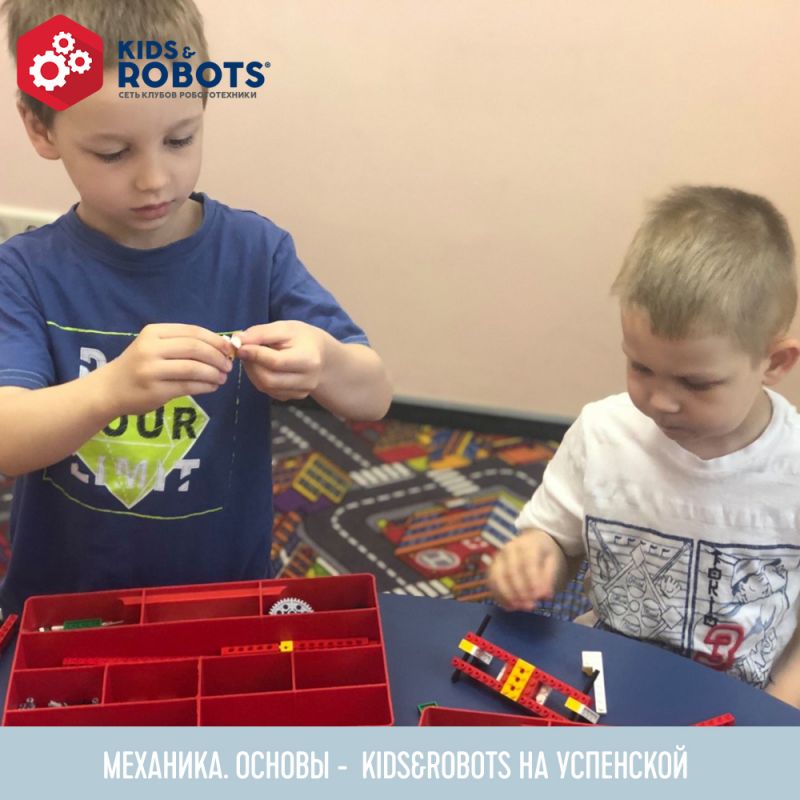В Клубе Робототехники Kids&Robots на Успенской проходят занятия по курсу Механика. Основы. Они рассчитаны на детей 4-6 лет. Данный курс знакомит детей с механизмами, которые существуют и окружают нас в реальном мире и понять простые закономерности устройства. Почему и как самолет летает, как движется эскалатор, почему велосипед в спокойном состоянии падает на бок, а в движении едет да еще и везет человека?! Столько неизвестного вокруг, а разобраться в этом помогут уроки в нашем клубе.