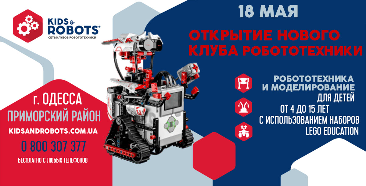 Совсем скоро мир технических наук станет еще ближе для детей Приморском района. 18 мая свои двери откроет новый Клуб Робототехники Kids&robots. По традиции мы решили провести сразу 2 дня открытия, поэтому праздник продлится все выходные - 18 и 19 мая.