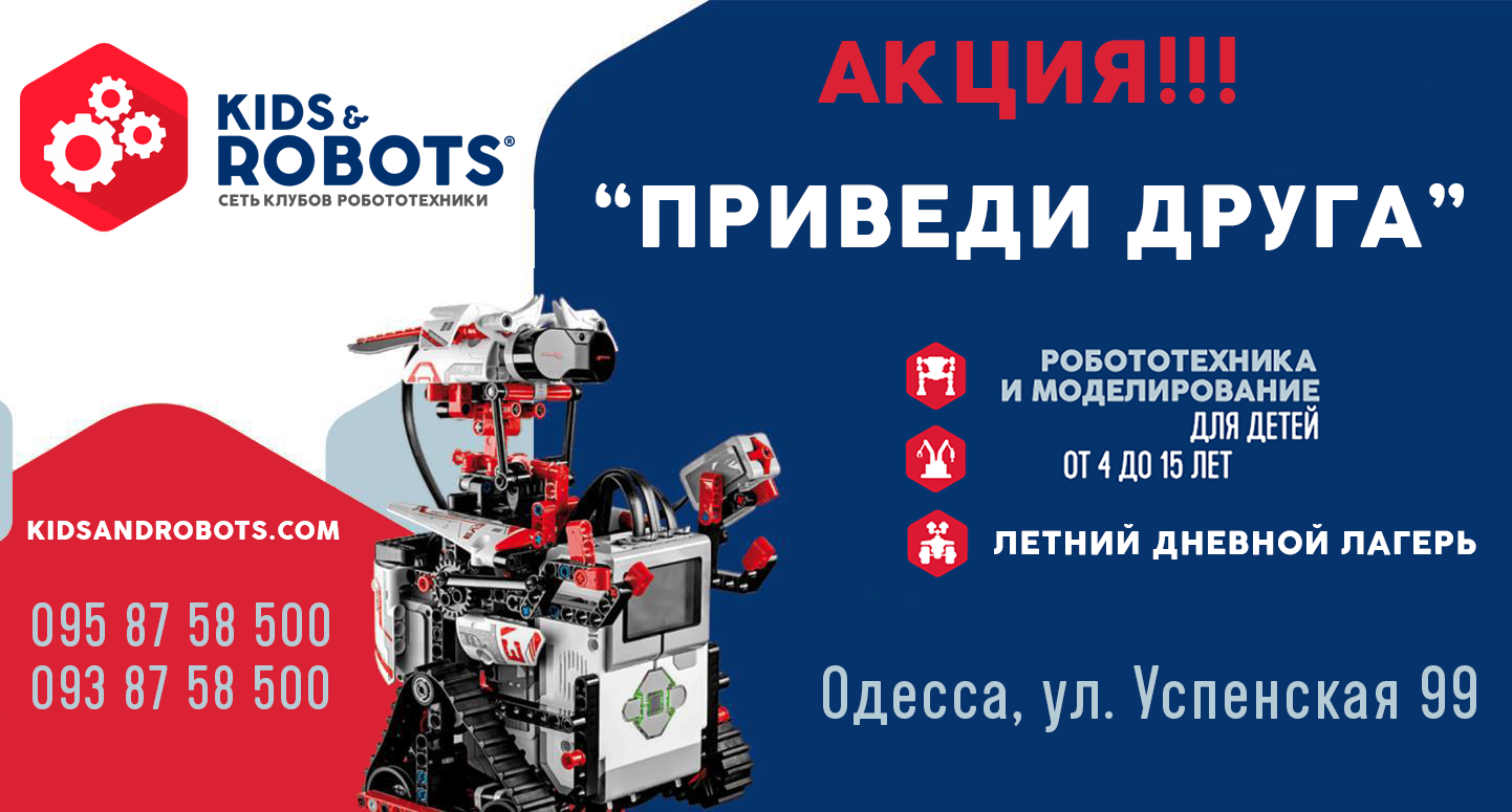 В Клубе Робототехники Kids&Robots на Успенской действует Акция!!! - "Приведи друга" (брата/сестру) и получи скидку - 10% или по 5% каждому! Скидка распространяется на все абонементы клуба и смены летнего дневного инженерного лагеря от Kids&Robots.