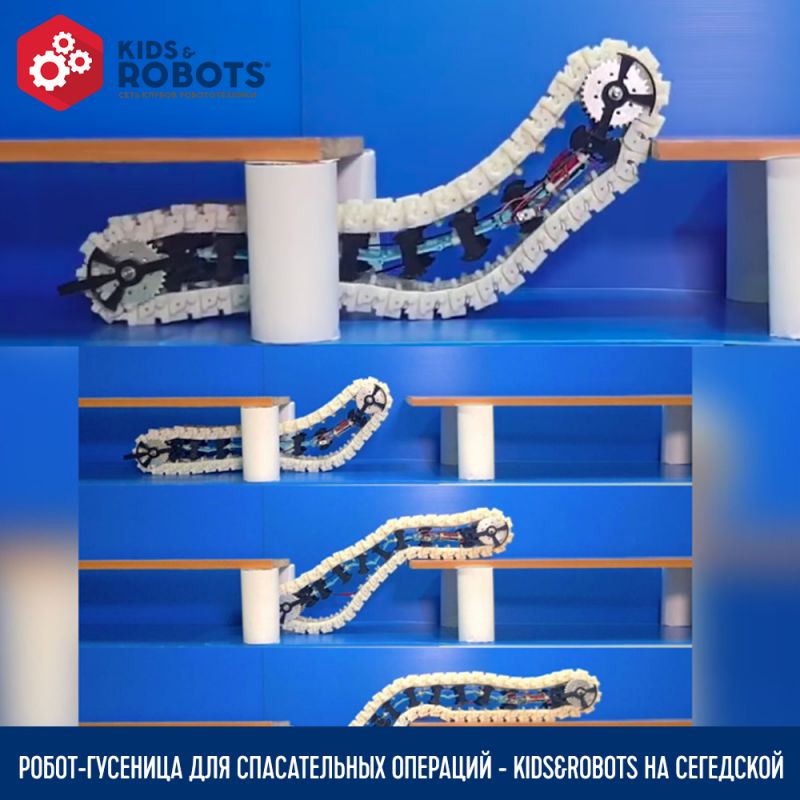 В условиях полнейшей роботизации процессов, для выполнения особо опасных операций по спасению людей из завалов, поиском пропавших, выполнение обезвреживания взрывоопасных устройств, был создан робот с гусеничными колесами. Он способен быстро передвигаться по скалистой местности, преодолевает сложные препятствия. Внешне аппарат похож на гусеничную часть обычного танка. Угол между звеньями гусеницы меняется с легкостью,что придает особо гибкой особенностью при движении. В движение робот приводится при помощи трех двигателей, но для уменьшения стоимости аппарата, разработчики планируют перевести его на два мотора. Благодаря необычной конструкции звеньев, робот совершает необычные маневры, в виде прыжка через пропасть, поднятие в горы и безопасного спуска.